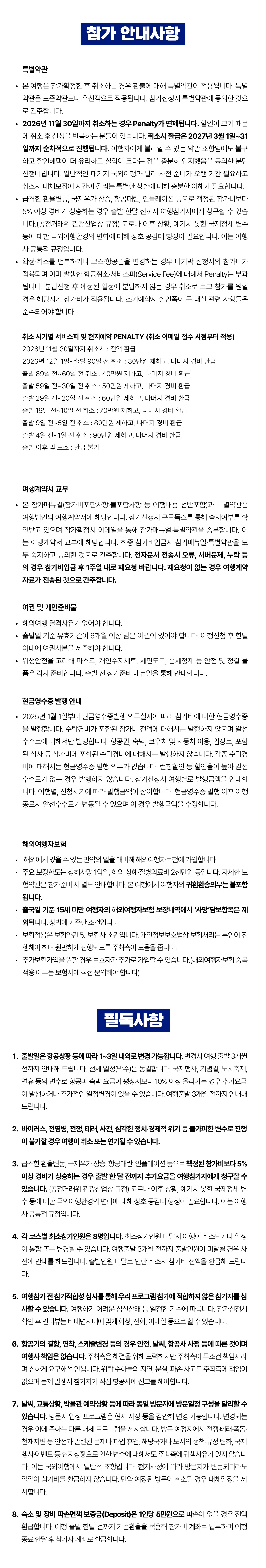 상세한 여행준비를 위해 구글 참가신청서를 작성해주셔야 합니다. 구글독스 참가신청서를 작성하지 않으면 정상적으로 예약이 접수되지 않습니다. 클릭하면 바로 구글 참가신청서로 연결됩니다.