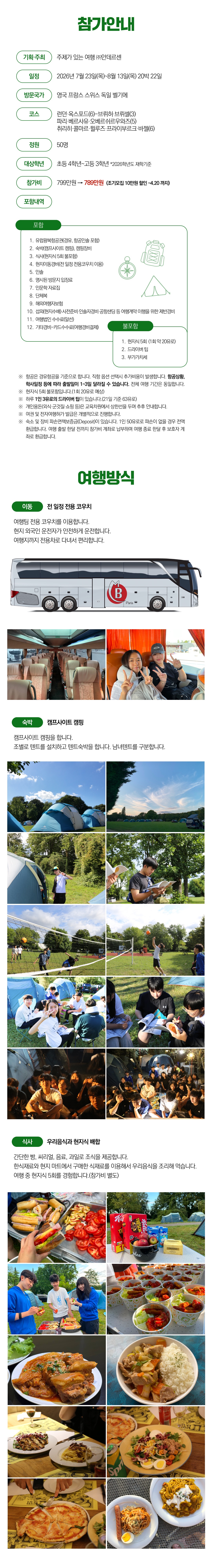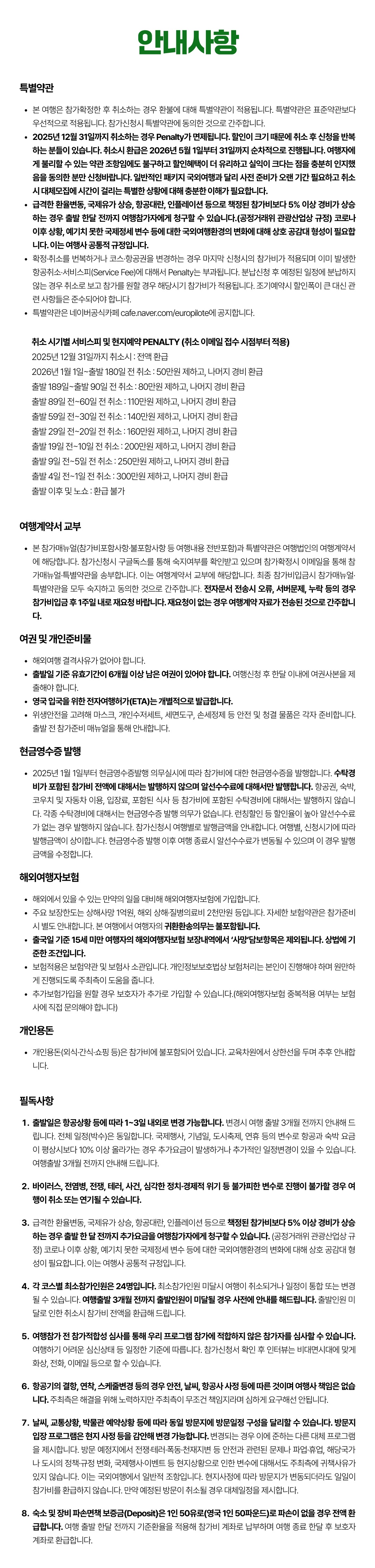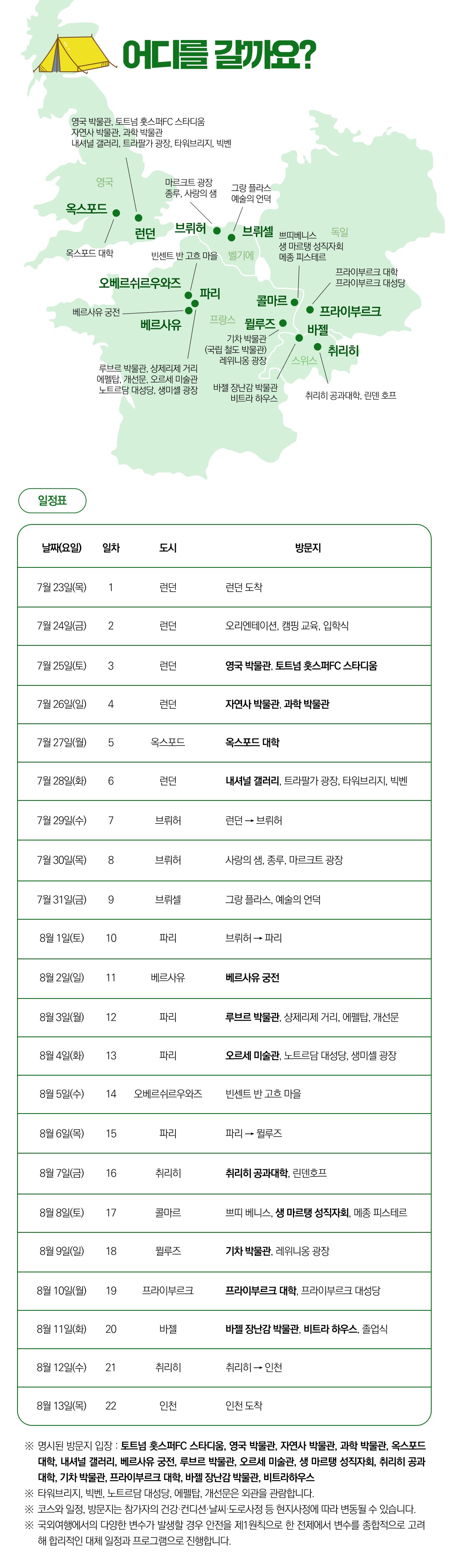 | 여행기간 | 2026년 07월 23일 (목) ~ 2026년 08월 13일 (목) 20박 22일 |