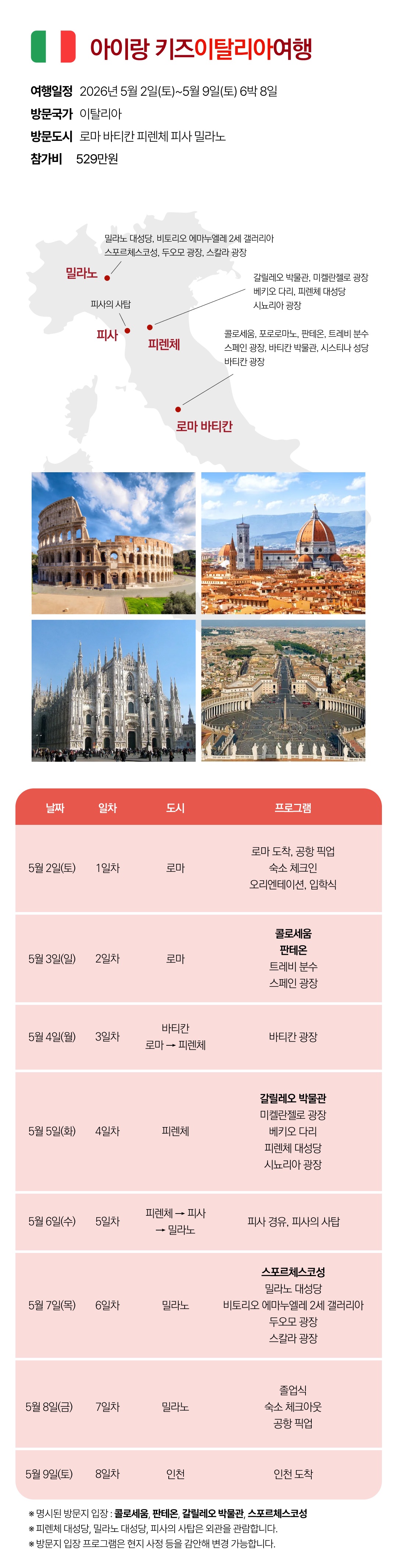 | 여행기간 | 2026년 05월 02일 (토) ~ 2026년 05월 09일 (토) 6박 8일 |