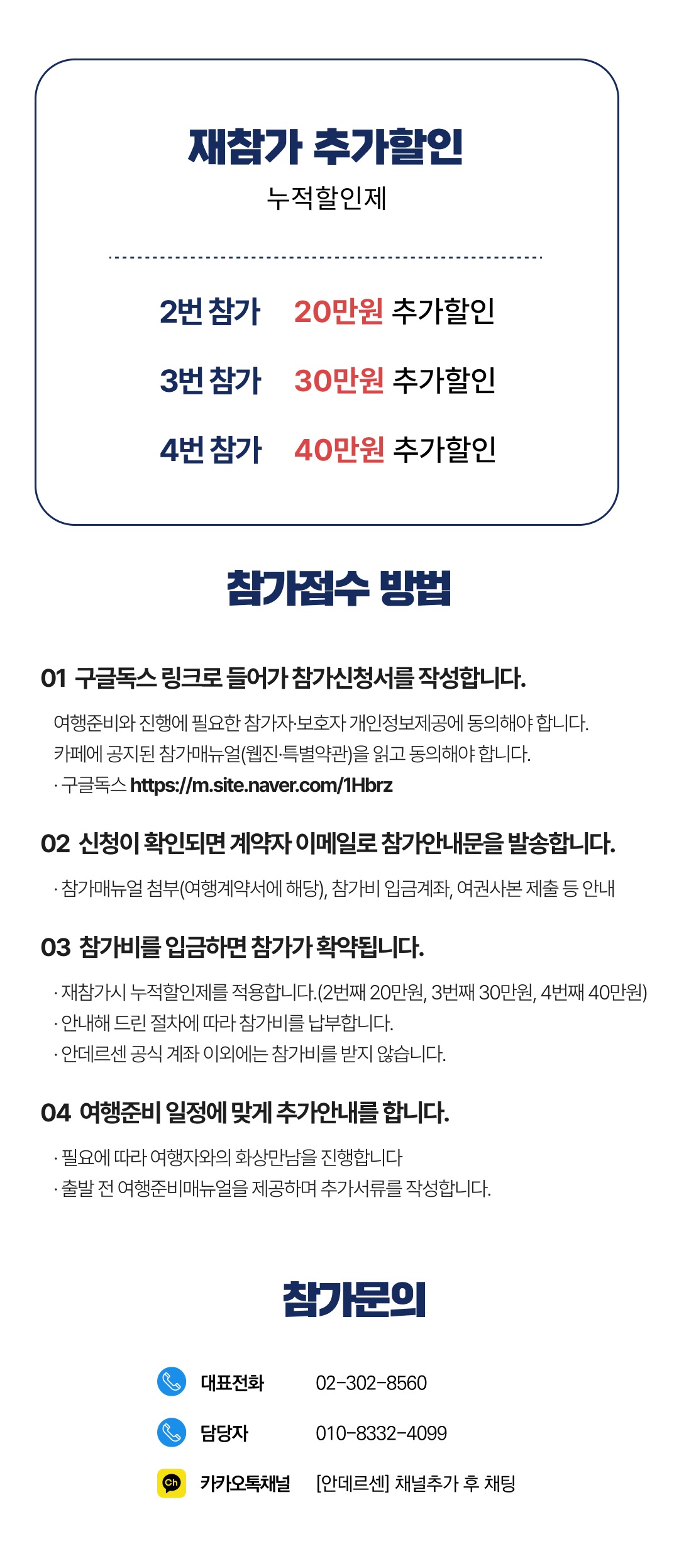 상세한 여행준비를 위해 구글 참가신청서를 작성해주셔야 합니다. 구글독스 참가신청서를 작성하지 않으면 정상적으로 예약이 접수되지 않습니다. 클릭하면 바로 구글 참가신청서로 연결됩니다.