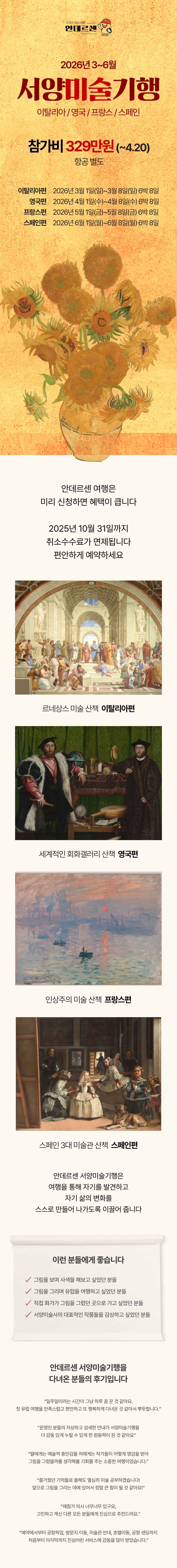 안데르센 서양미술기행은 여행을 통해 자기를 발견하고 자기 삶의 변화를 스스로 만들어 나가도록 이끌어 줍니다.