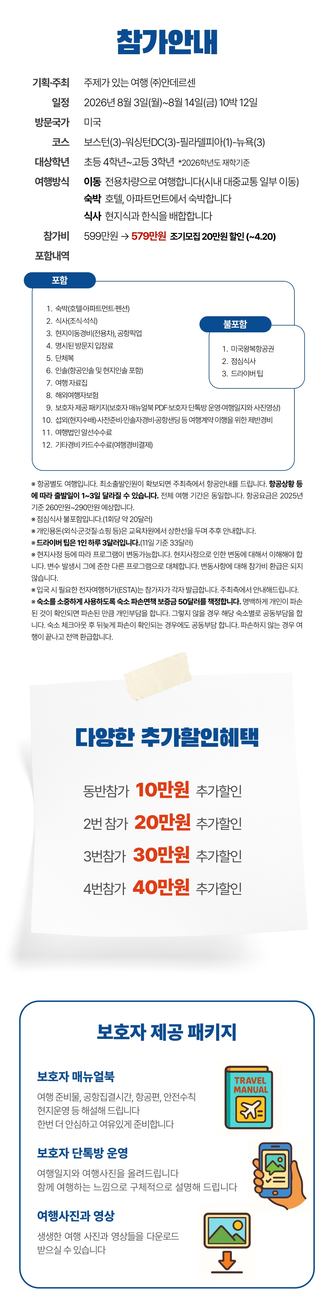 • 보호자 제공 패키지(보호자 매뉴얼북 PDF·보호자 단톡방 운영·여행일지와 사진영상)