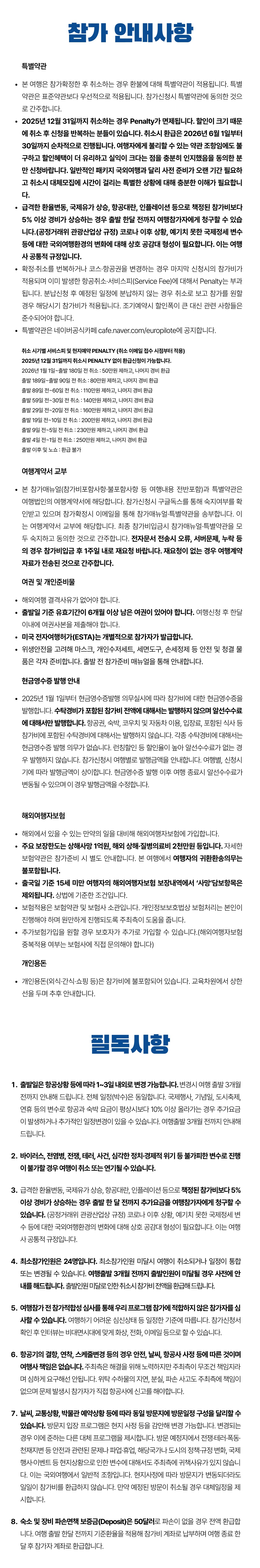 항공별도 여행입니다. 최소출발인원이 확보되면 주최측에서 항공안내를 드립니다. 항공상황 등에 따라 출발일이 1~3일 달라질 수 있습니다. 전체 여행 기간은 동일합니다. 항공요금은 2025년 기준 260만원~290만원 예상합니다.