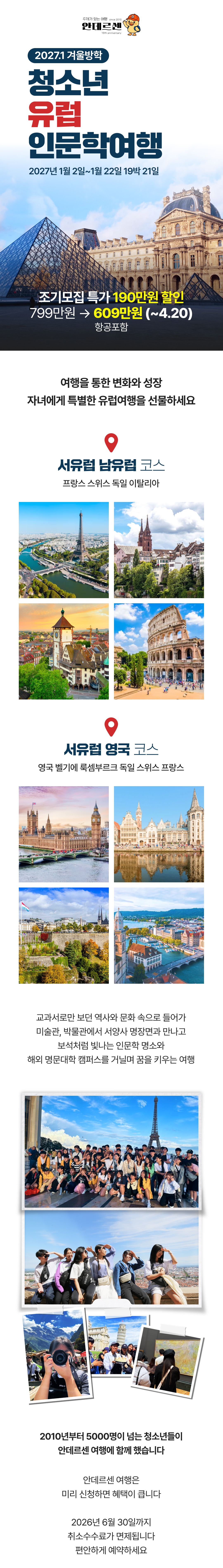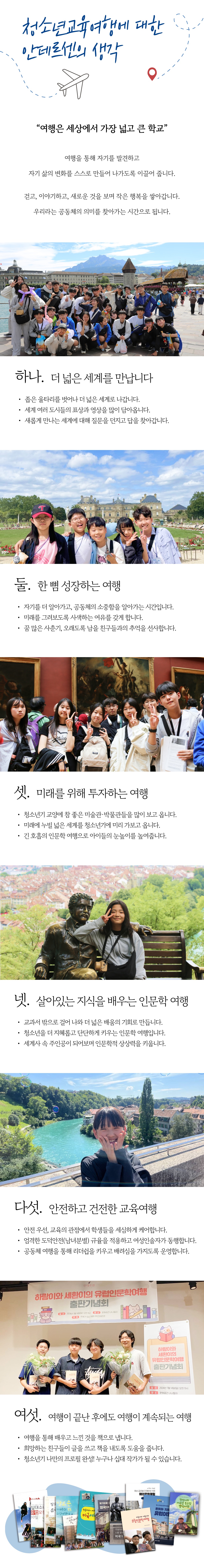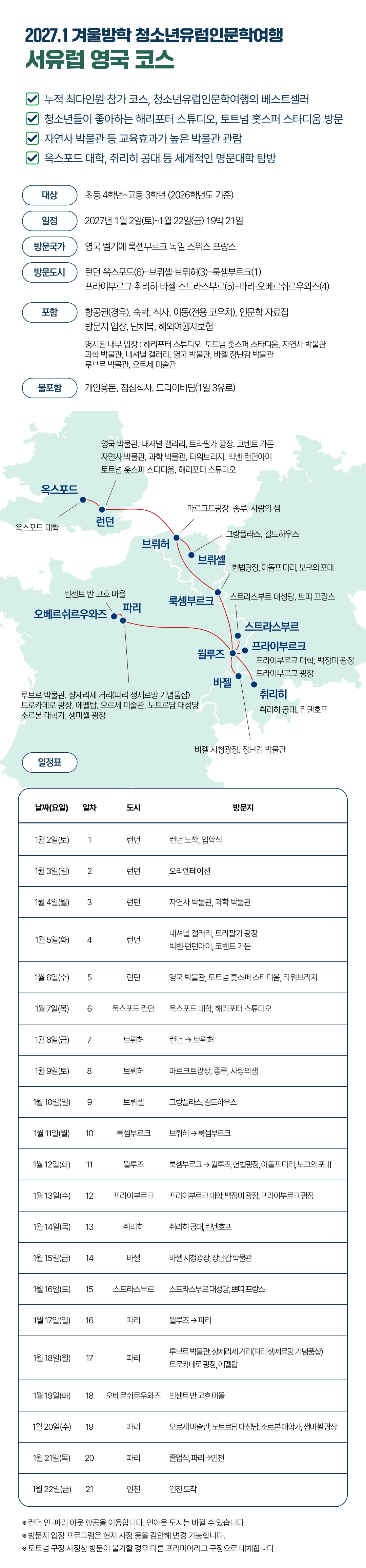 안전한 여행을 위해 주최측은 외교부 해외안전여행, 현지언론보도 등을 예의주시하며 예기치 않은 상황발생시에도 빠르게 조치를 취하고 있습니다. 이와 별도로 여행참가 전 해당 방문국의 여행안전경보, 예방접종 등과 관련해서는 보호자와 여행자 각자가 판단해야 합니다. 외교부 해외안전여행, 해외여행 질병정보 등의 사이트를 확인바랍니다. 어플을 설치하셔서 실시간 확인하는 것이 좋습니다. 비의료인은 의료조치를 할 수 없습니다. 주최측은 예방접종 등 의료적 권고는 하지 않습니다. 여행자가 스스로 판단해 진행 바랍니다.