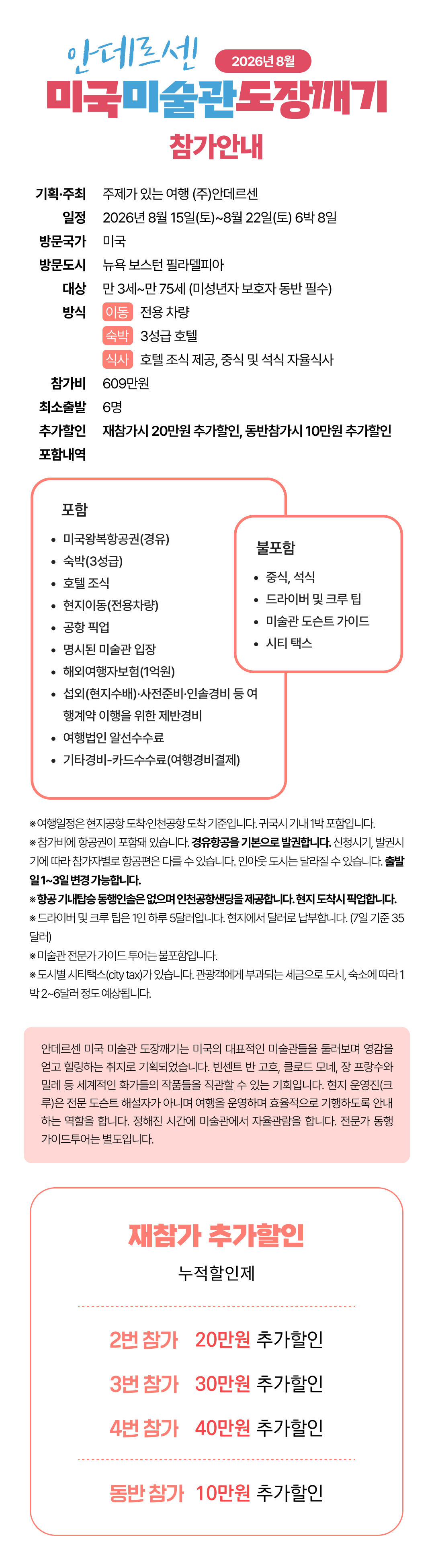 안전한 여행을 위해 주최측은 외교부 해외안전여행, 현지언론보도 등을 예의주시하며 예기치 않은 상황발생시에도 빠르게 조치를 취하고 있습니다. 이와 별도로 여행참가 전 해당 방문국의 여행안전경보, 예방접종 등과 관련해서는 보호자와 여행자 각자가 판단해야 합니다. 외교부 해외안전여행, 해외여행 질병정보 등의 사이트를 확인바랍니다. 어플을 설치하셔서 실시간 확인하는 것이 좋습니다. 비의료인은 의료조치를 할 수 없습니다. 주최측은 예방접종 등 의료적 권고는 하지 않습니다. 여행자가 스스로 판단해 진행 바랍니다.