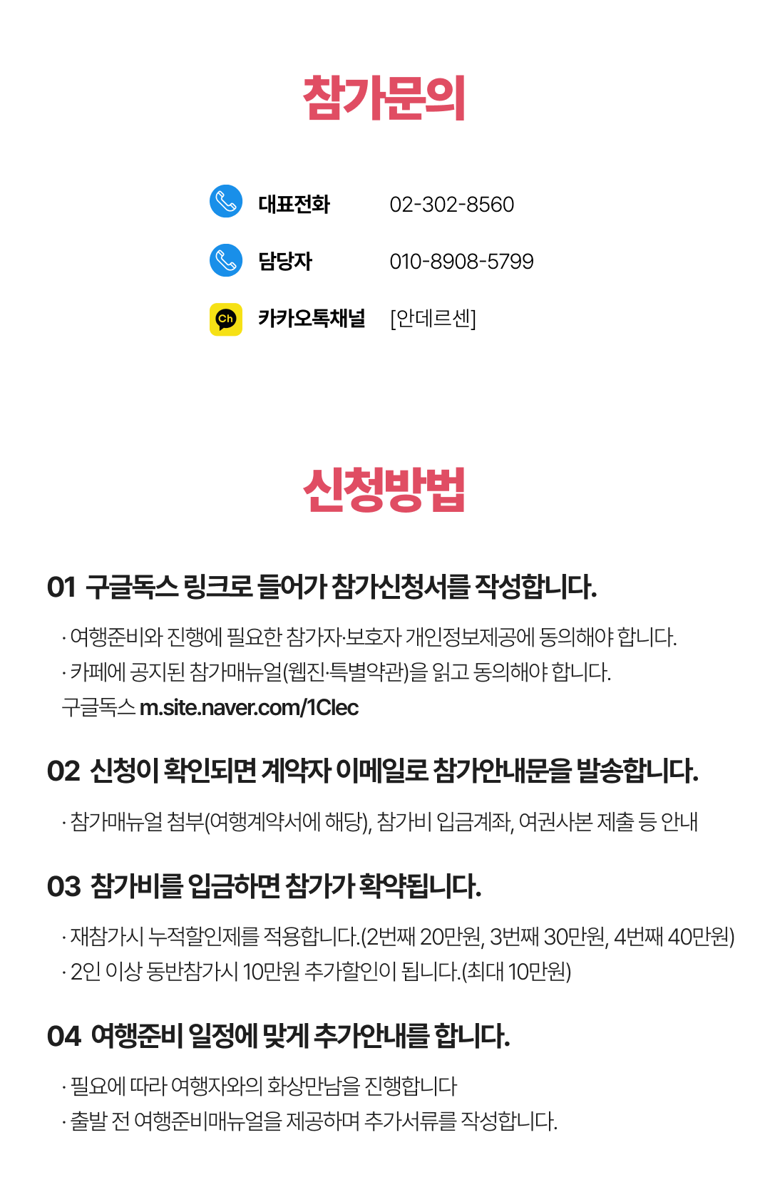 4. 여행 중 컨디션 관리에 만전을 기합니다. 여행을 진행하기 어려운 컨디션일 경우는 꼭 운영진에게 알려주시기 바랍니다.