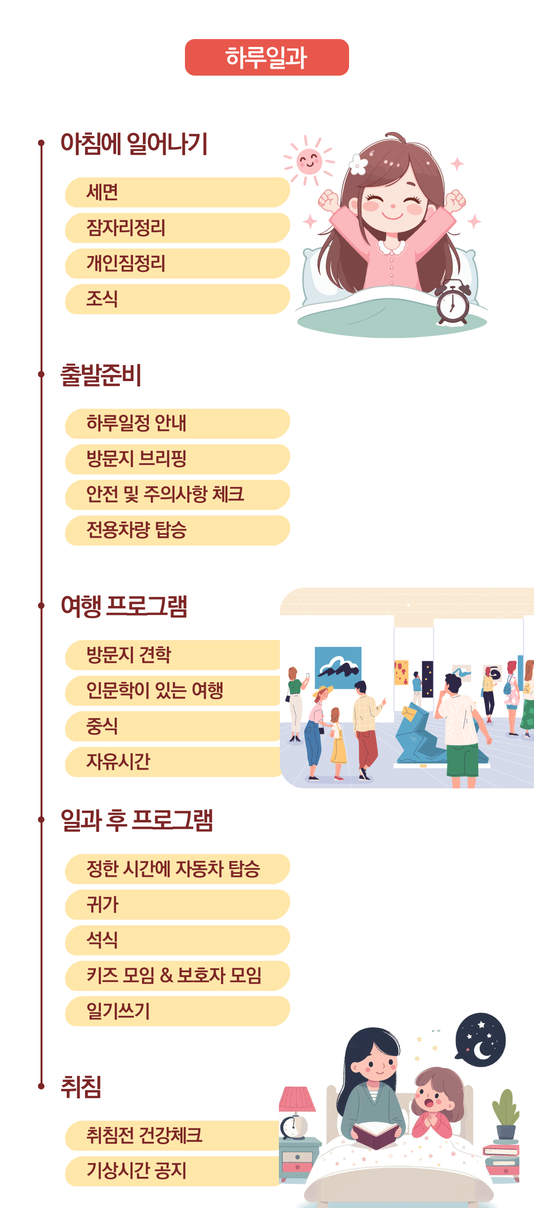 안전한 여행을 위해 주최측은 외교부 해외안전여행, 현지언론보도 등을 예의주시하며 예기치 않은 상황발생시에도 빠르게 조치를 취하고 있습니다. 이와 별도로 여행참가 전 해당 방문국의 여행안전경보, 예방접종 등과 관련해서는 보호자와 여행자 각자가 판단해야 합니다. 외교부 해외안전여행, 해외여행 질병정보 등의 사이트를 확인바랍니다. 어플을 설치하셔서 실시간 확인하는 것이 좋습니다. 비의료인은 의료조치를 할 수 없습니다. 주최측은 예방접종 등 의료적 권고는 하지 않습니다. 여행자가 스스로 판단해 진행 바랍니다.