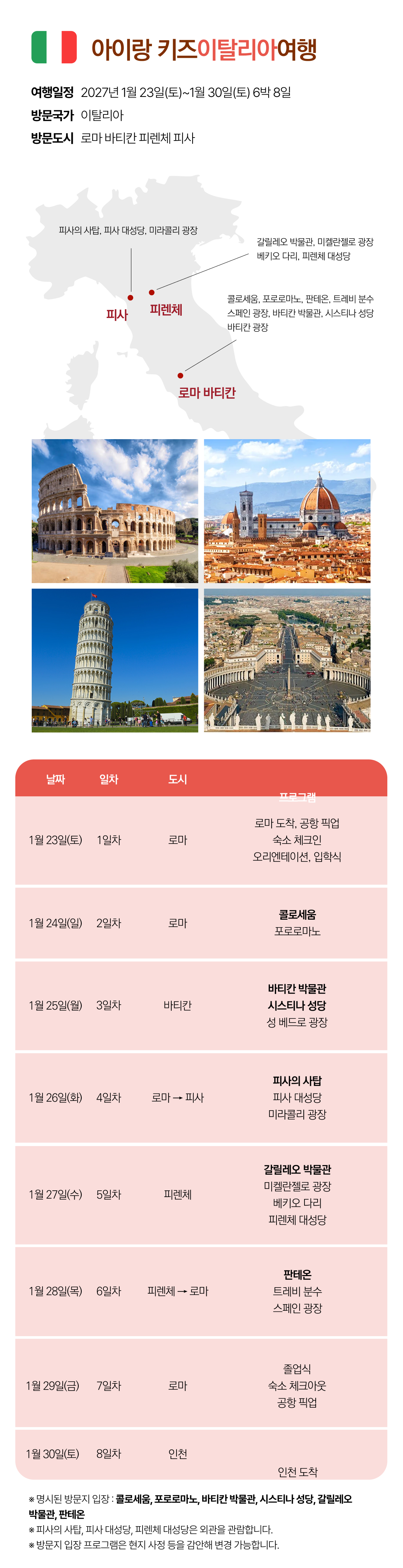 [2027년 1월] 아이랑 키즈이탈리아여행