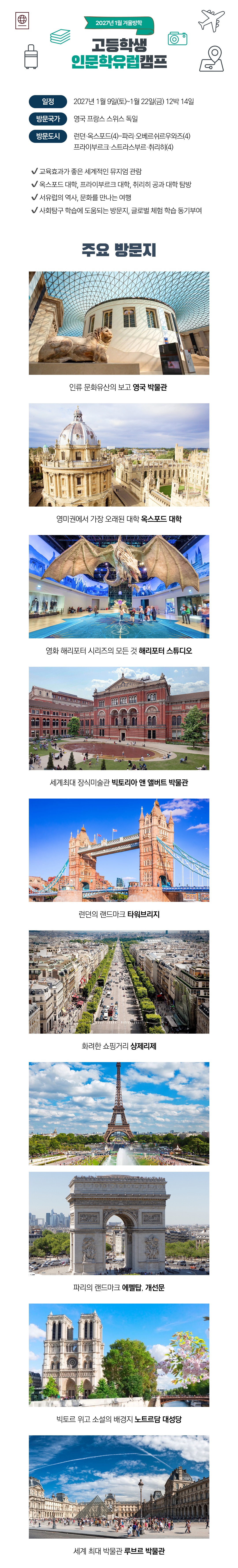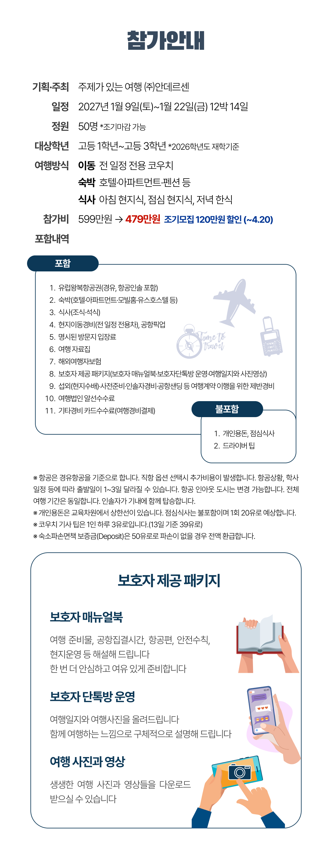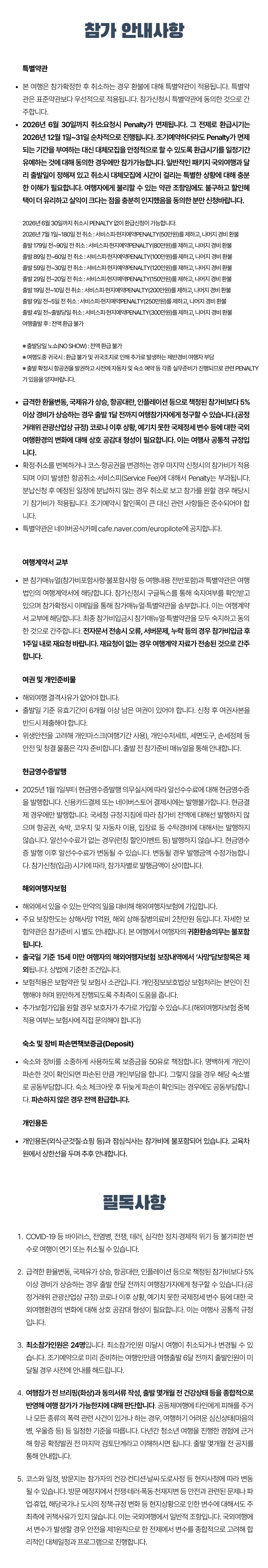 | 여행기간 | 2027년 01월 09일 (토) ~ 2027년 01월 22일 (금) 12박 14일 |