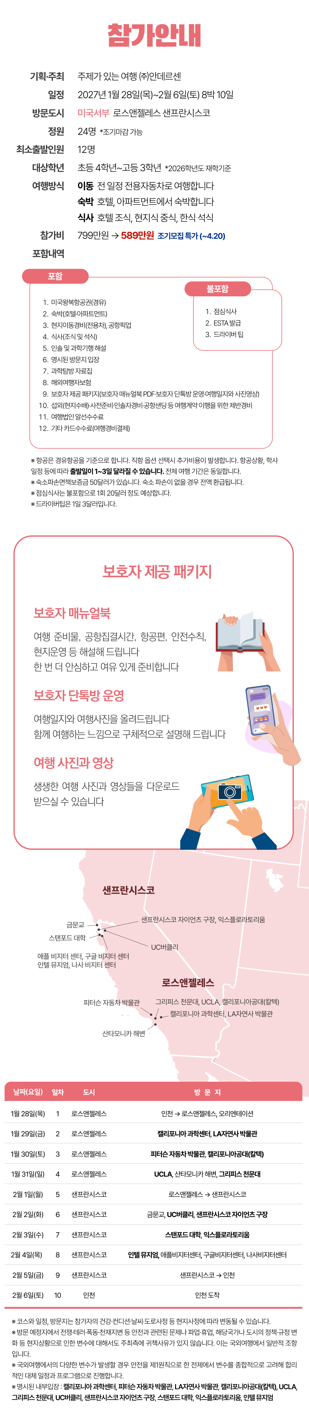 • [2027년 1∼2월] 청소년 미국과학기행 숙소