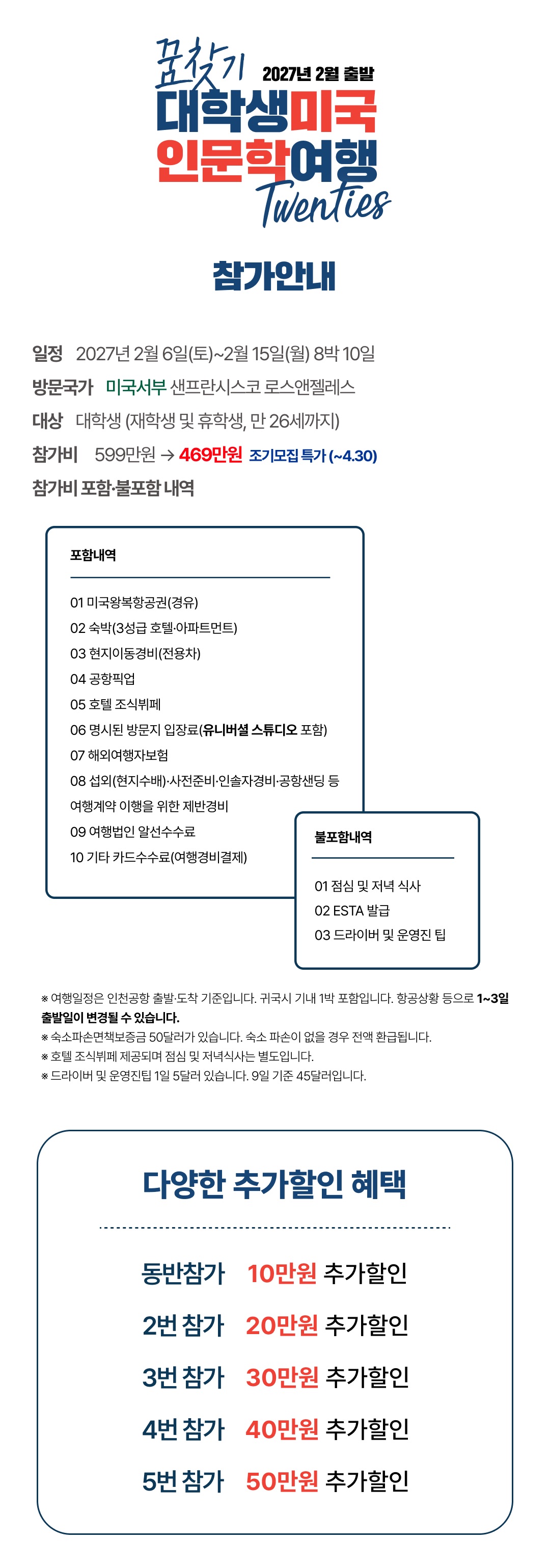 [2027년 2월] 꿈찾기 대학생 미국인문학여행