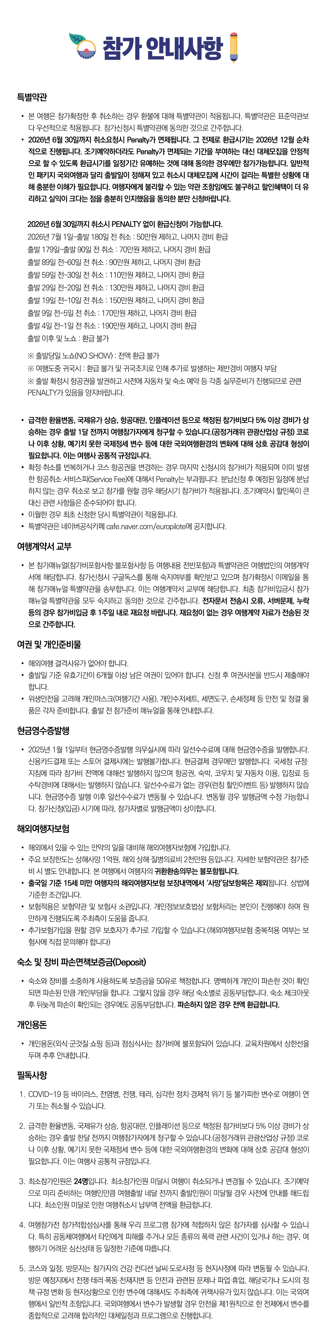 4. 여행 중 컨디션 관리에 만전을 기합니다. 여행을 진행하기 어려운 컨디션일 경우는 꼭 운영진에게 알려주시기 바랍니다.