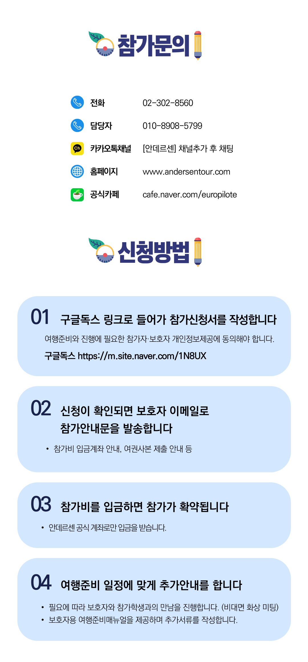 상세한 여행준비를 위해 구글 참가신청서를 작성해주셔야 합니다. 구글독스 참가신청서를 작성하지 않으면 정상적으로 예약이 접수되지 않습니다. 클릭하면 바로 구글 참가신청서로 연결됩니다.