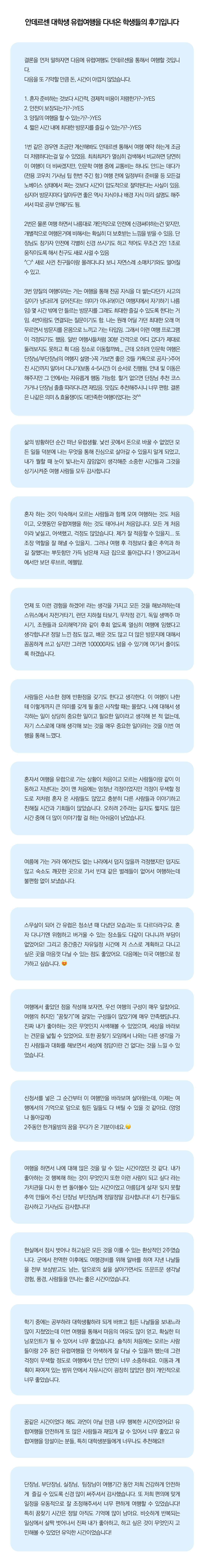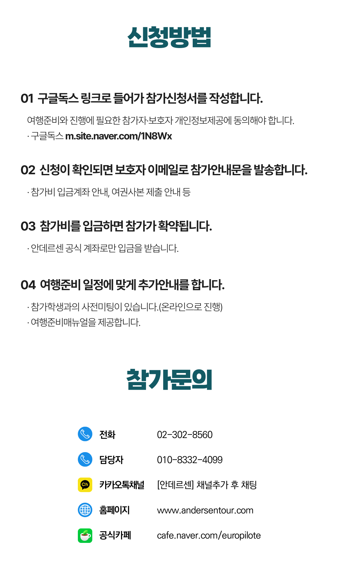 상세한 여행준비를 위해 구글 참가신청서를 작성해주셔야 합니다. 구글독스 참가신청서를 작성하지 않으면 정상적으로 예약이 접수되지 않습니다. 클릭하면 바로 구글 참가신청서로 연결됩니다.