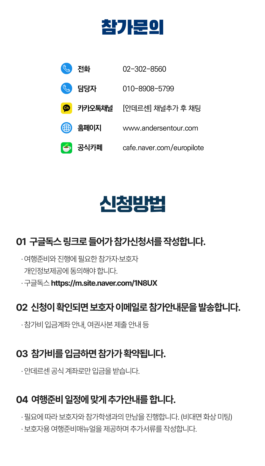 상세한 여행준비를 위해 구글 참가신청서를 작성해주셔야 합니다. 구글독스 참가신청서를 작성하지 않으면 정상적으로 예약이 접수되지 않습니다. 클릭하면 바로 구글 참가신청서로 연결됩니다.