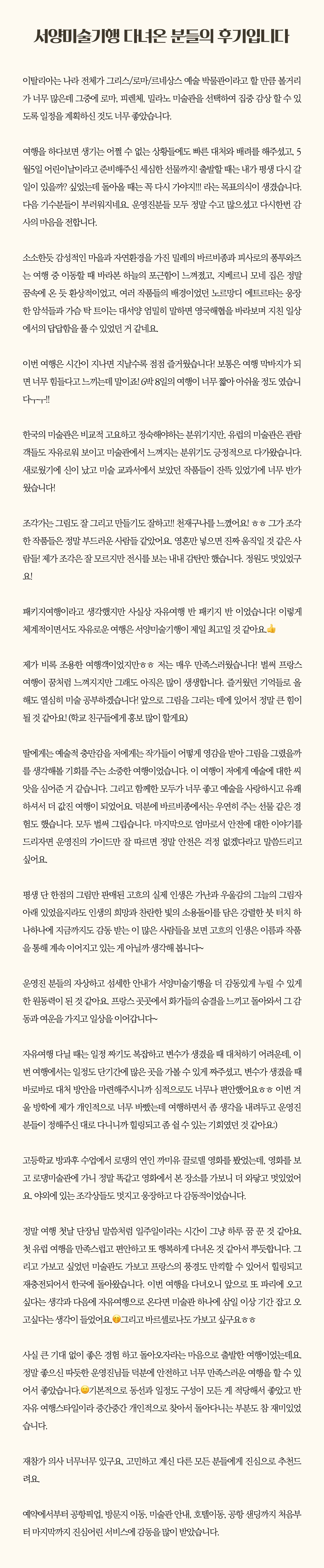 • [2026년 11월] 서양미술기행 숙소
