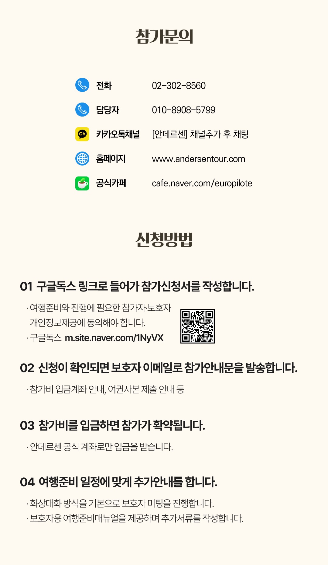 상세한 여행준비를 위해 구글 참가신청서를 작성해주셔야 합니다. 구글독스 참가신청서를 작성하지 않으면 정상적으로 예약이 접수되지 않습니다. 클릭하면 바로 구글 참가신청서로 연결됩니다.
