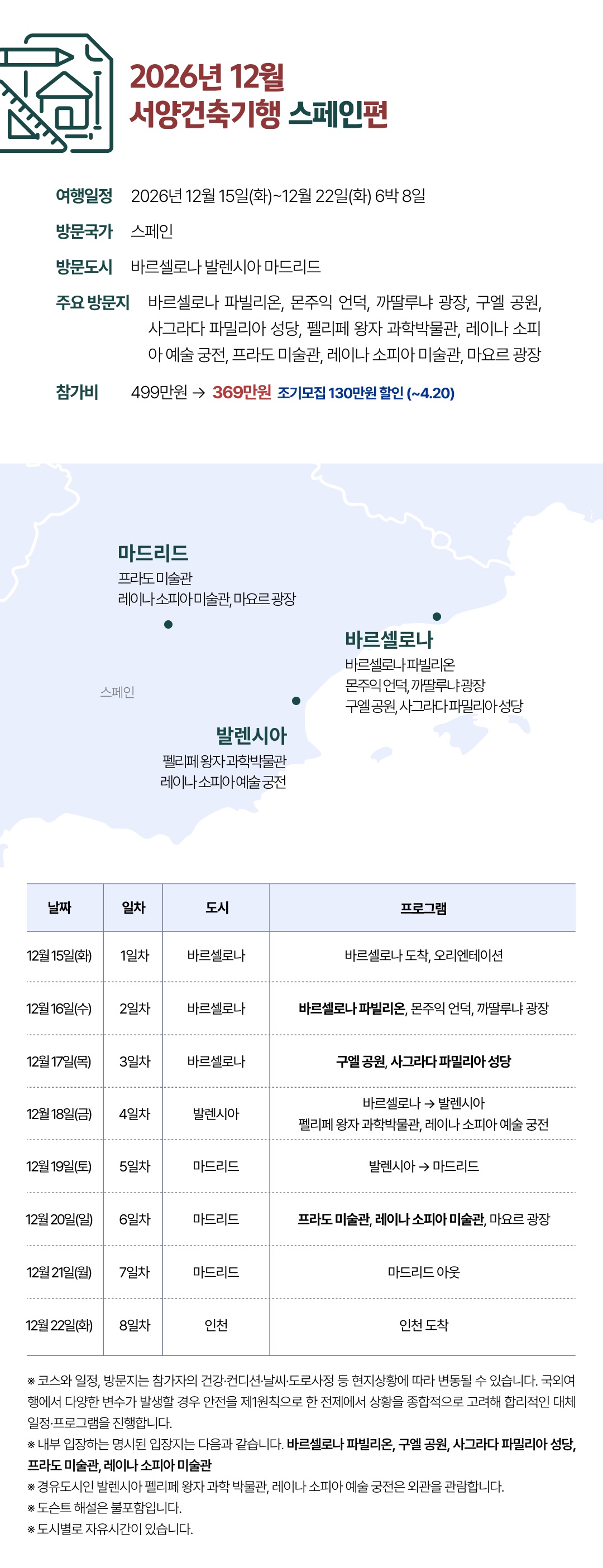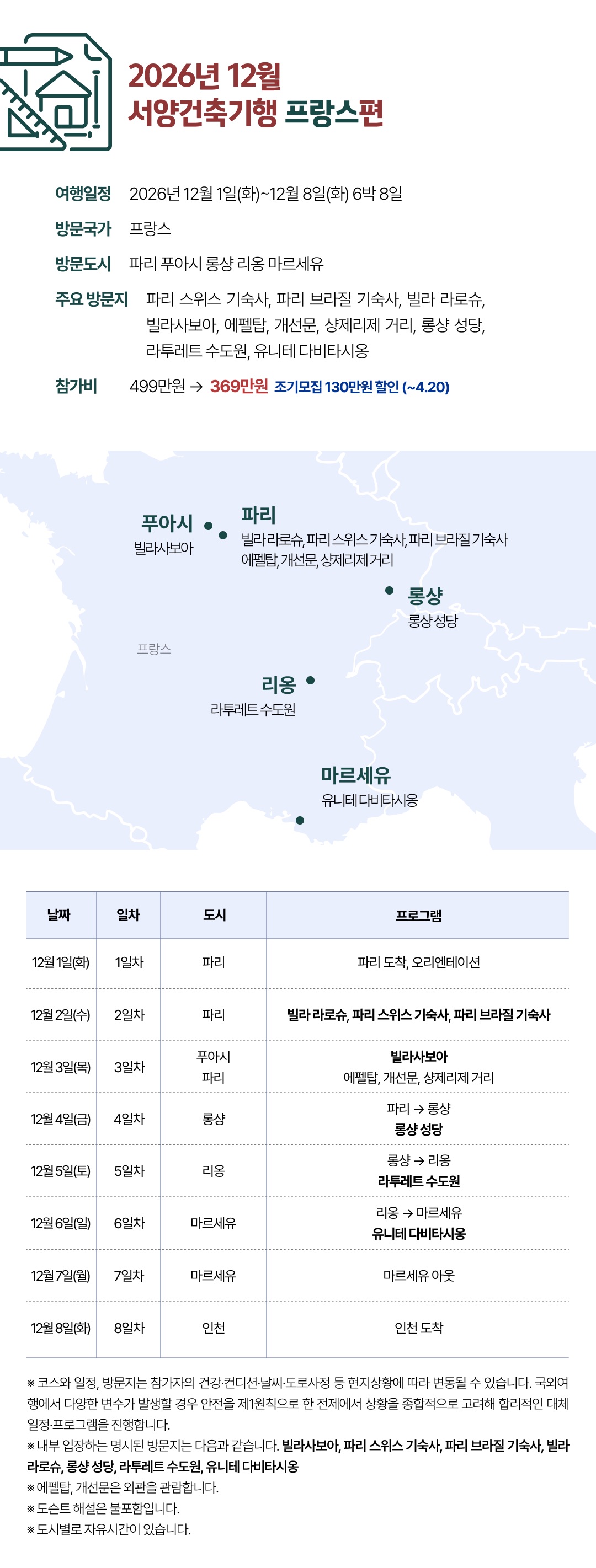 건축전공자 및 건축 관련 종사자들을 위한 여행