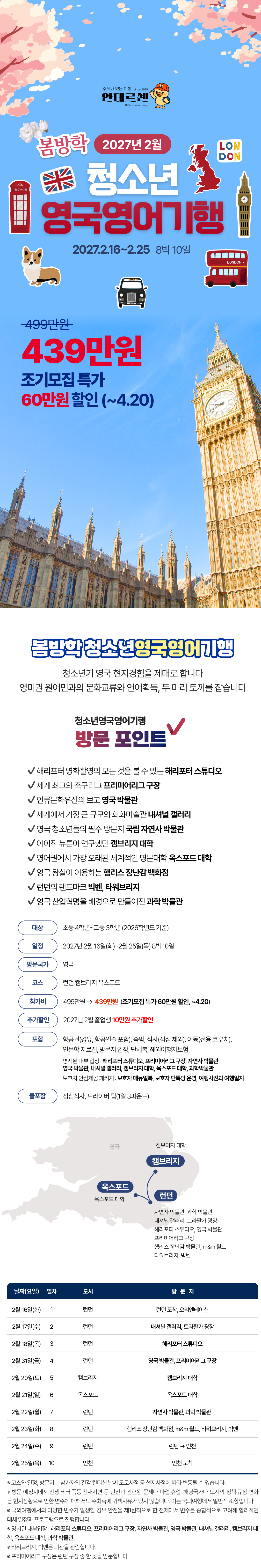 [2027년 2월] 봄방학 청소년 영국영어 기행