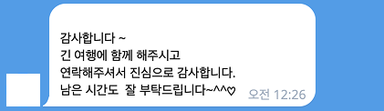 상세한 여행준비를 위해 구글 참가신청서를 작성해주셔야 합니다. 구글독스 참가신청서를 작성하지 않으면 정상적으로 예약이 접수되지 않습니다. 클릭하면 바로 구글 참가신청서로 연결됩니다.