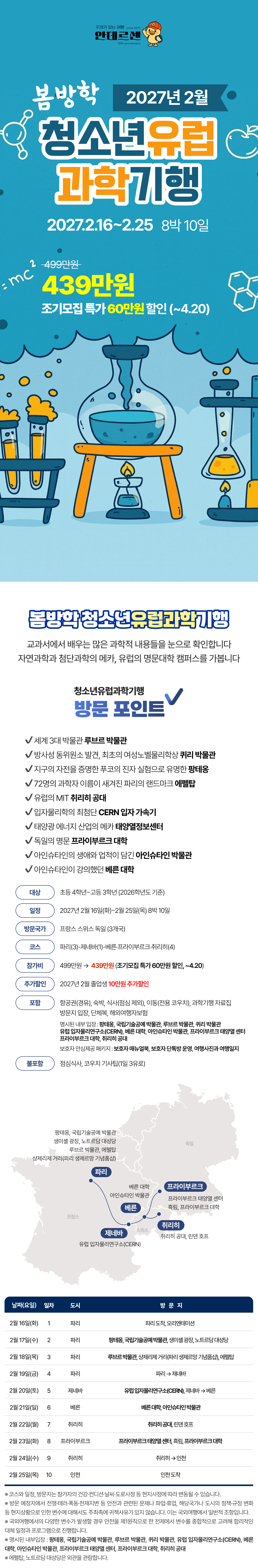 [2027년 2월] 봄방학 청소년 유럽과학기행