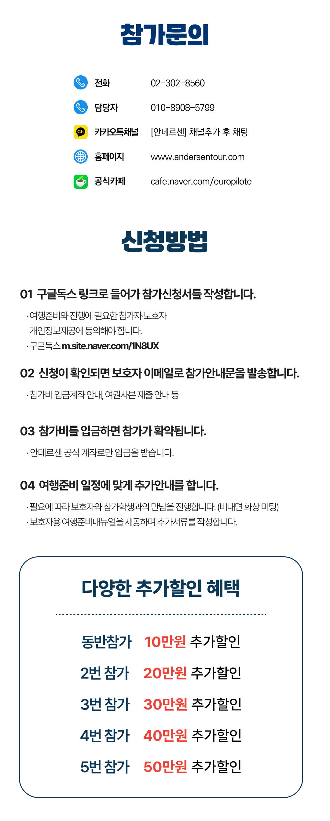상세한 여행준비를 위해 구글 참가신청서를 작성해주셔야 합니다. 구글독스 참가신청서를 작성하지 않으면 정상적으로 예약이 접수되지 않습니다. 클릭하면 바로 구글 참가신청서로 연결됩니다.