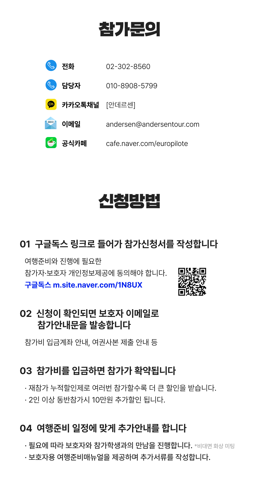 상세한 여행준비를 위해 구글 참가신청서를 작성해주셔야 합니다. 구글독스 참가신청서를 작성하지 않으면 정상적으로 예약이 접수되지 않습니다. 클릭하면 바로 구글 참가신청서로 연결됩니다.