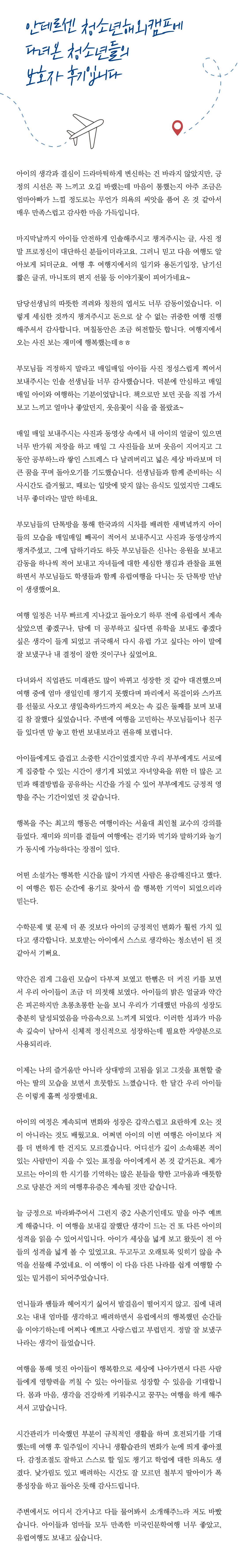 청소년 리더 프로그램과 연계해 커리큘럼을 완성 할 수 있는 여행