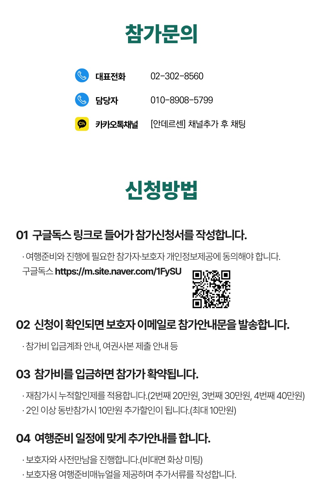 상세한 여행준비를 위해 구글 참가신청서를 작성해주셔야 합니다. 구글독스 참가신청서를 작성하지 않으면 정상적으로 예약이 접수되지 않습니다. 클릭하면 바로 구글 참가신청서로 연결됩니다.