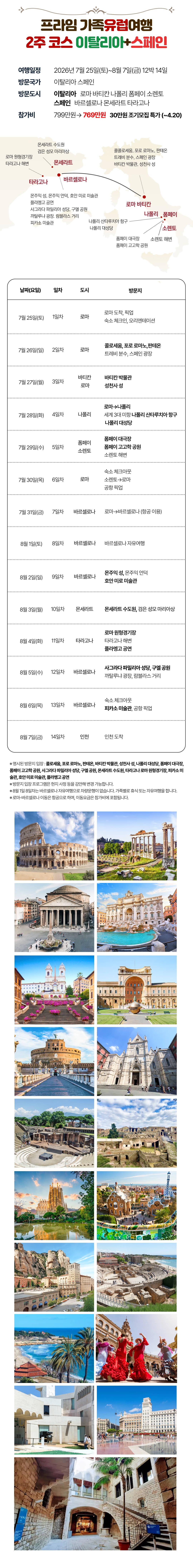[2026년 7~8월] 프라임 가족유럽여행 이탈리아+스페인 2주코스