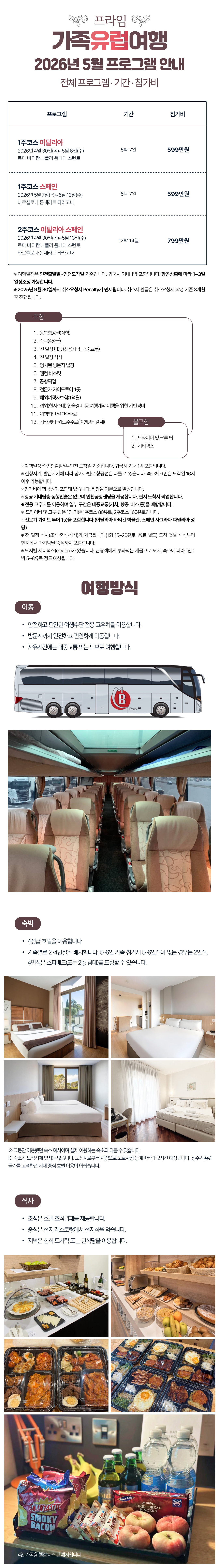 [2026년 5월] 프라임 가족유럽여행 이탈리아 스페인
