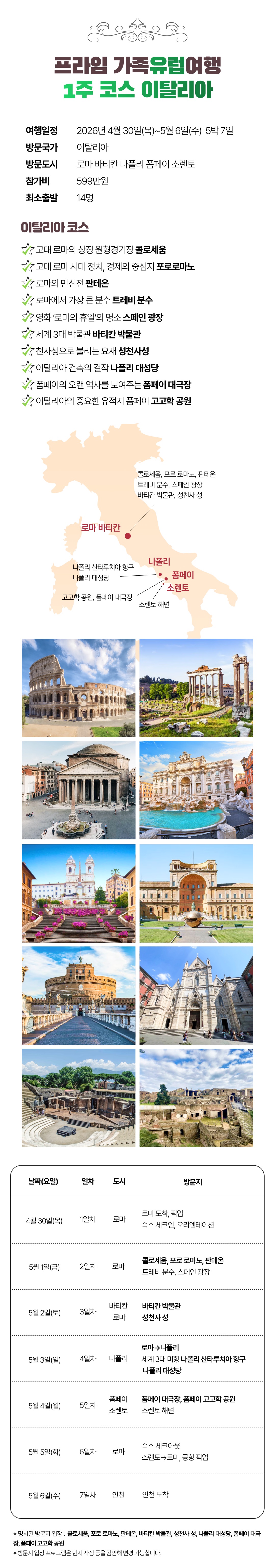 [2026년 5월] 프라임 가족유럽여행 이탈리아 1주코스