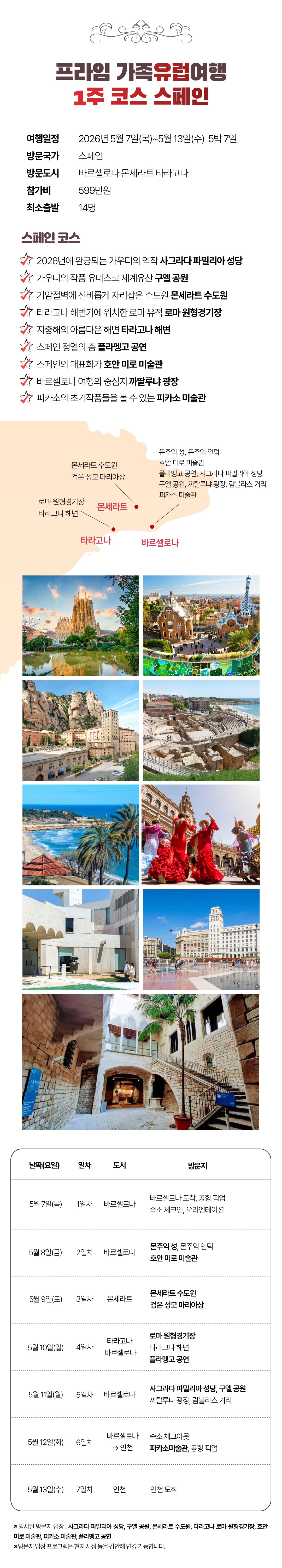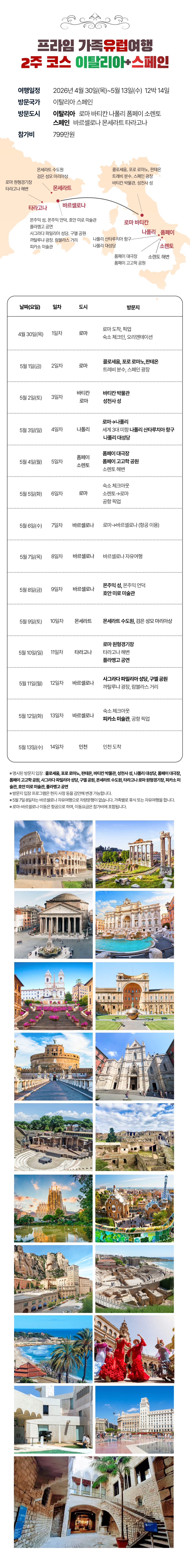 [2026년 5월] 프라임 가족유럽여행 이탈리아+스페인 2주코스