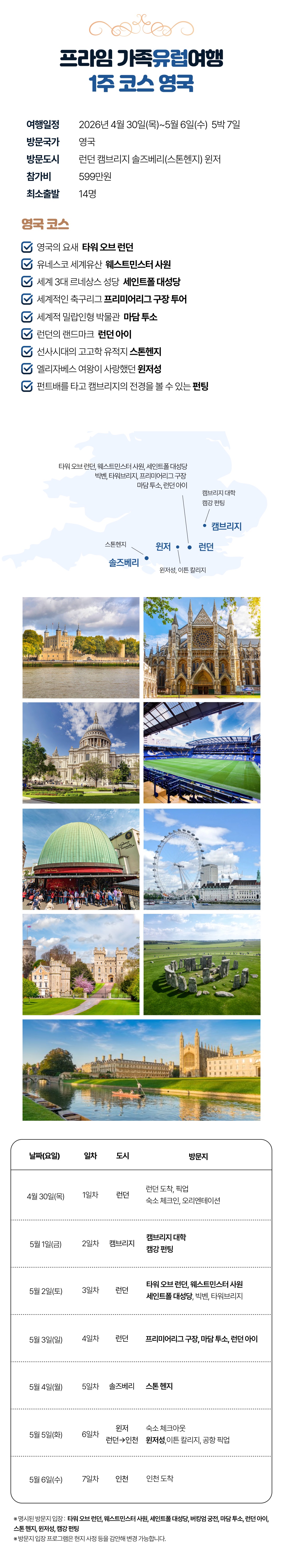 [2026년 5월] 프라임 가족유럽여행 영국 1주코스