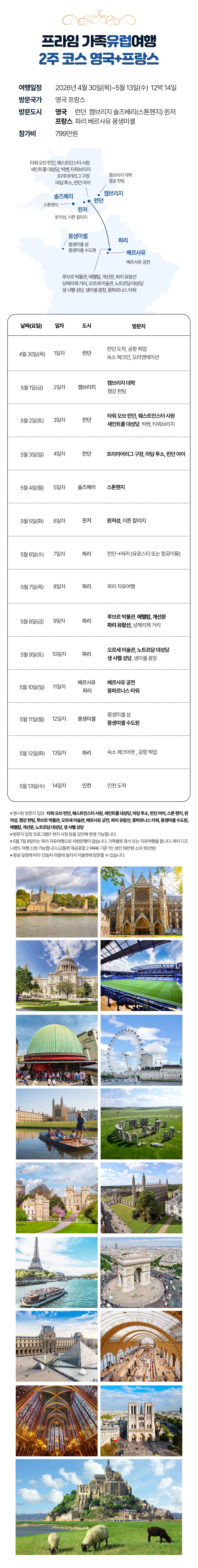 [2026년 5월] 프라임 가족유럽여행 영국+프랑스 2주코스