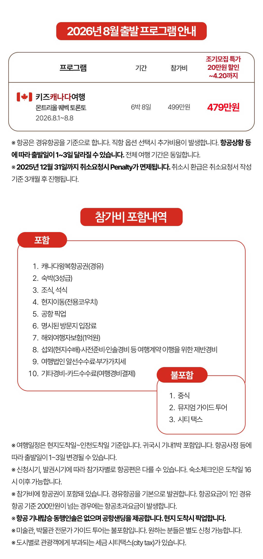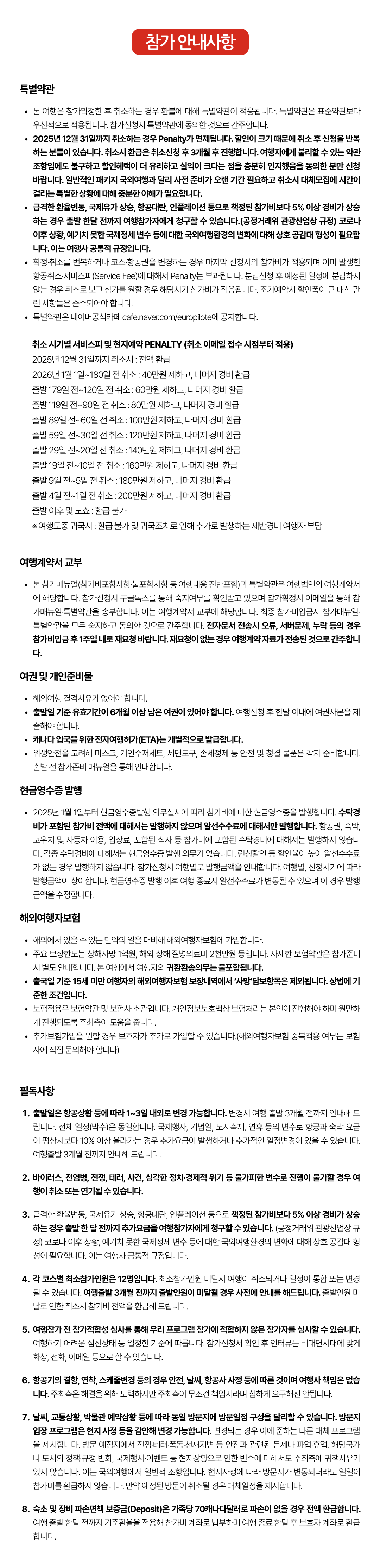 | 여행기간 | 2026년 08월 01일 (토) ~ 2026년 08월 08일 (토) 6박 8일 |