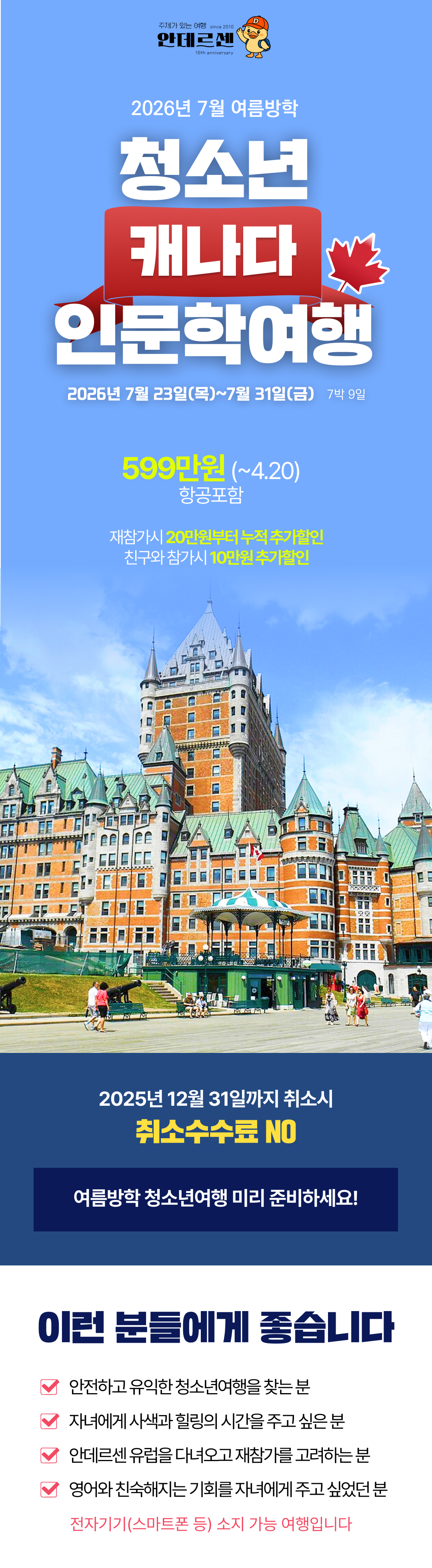 [2026년 7월] 청소년 캐나다인문학여행