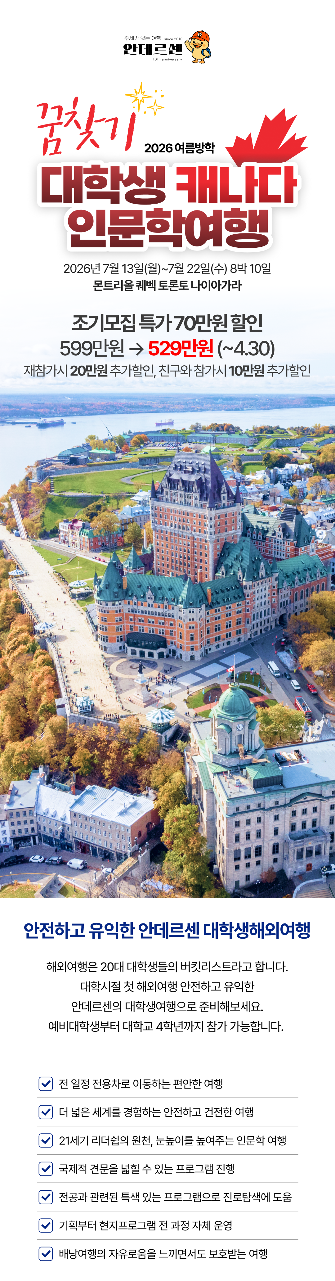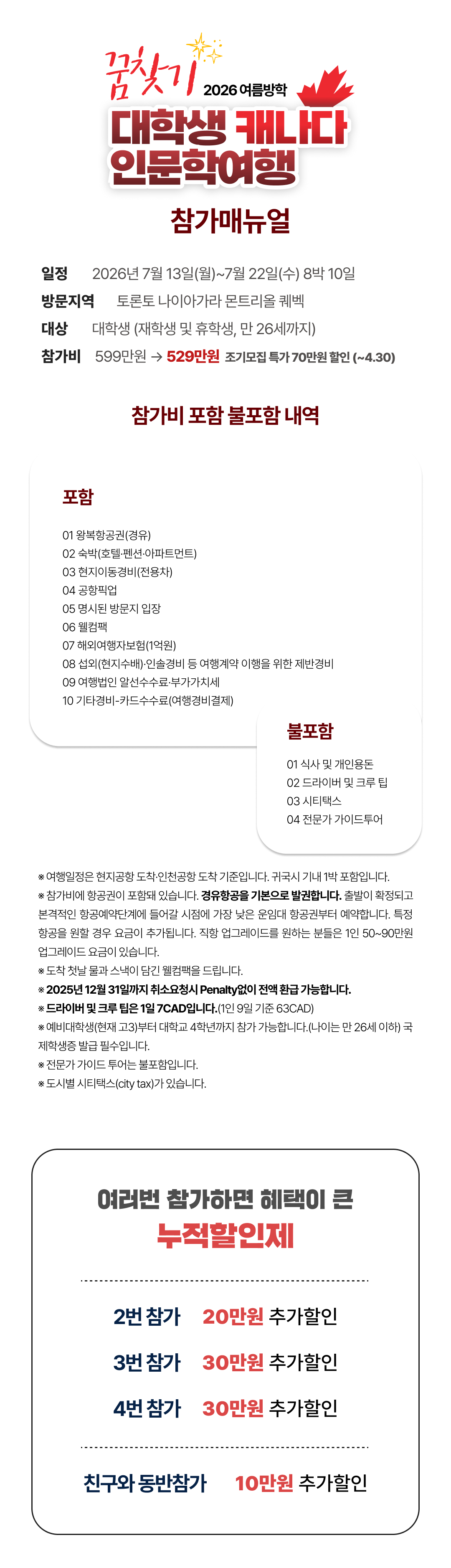 [2026년 7월] 꿈찾기 대학생 캐나다인문학여행