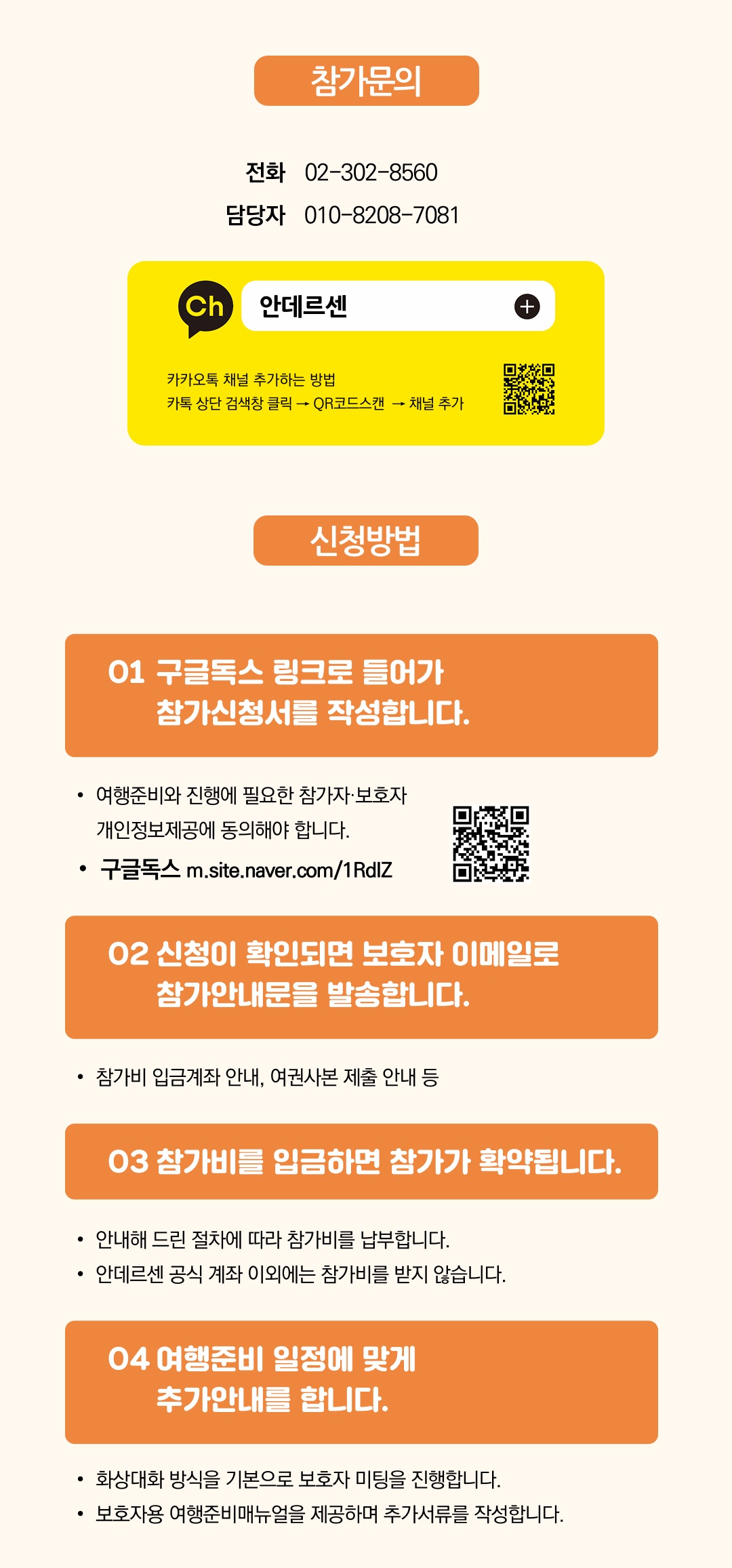 상세한 여행준비를 위해 구글 참가신청서를 작성해주셔야 합니다. 구글독스 참가신청서를 작성하지 않으면 정상적으로 예약이 접수되지 않습니다. 클릭하면 바로 구글 참가신청서로 연결됩니다.