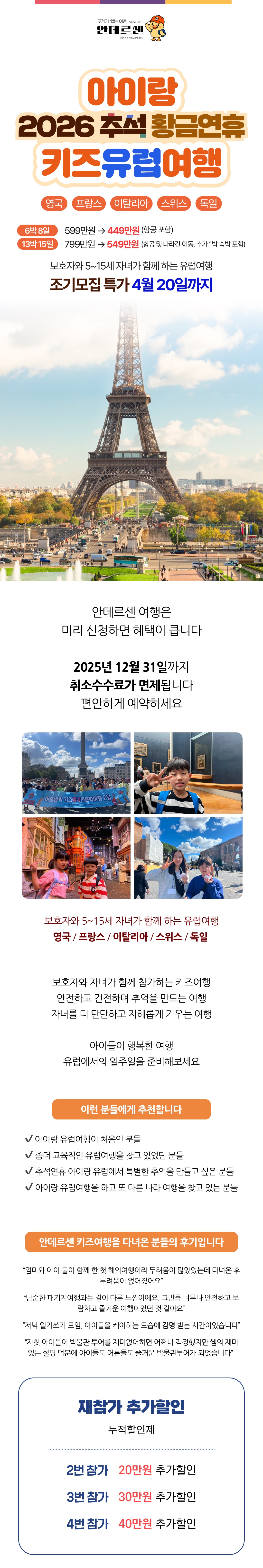 [2026년 9월] 추석 아이랑 키즈유럽여행