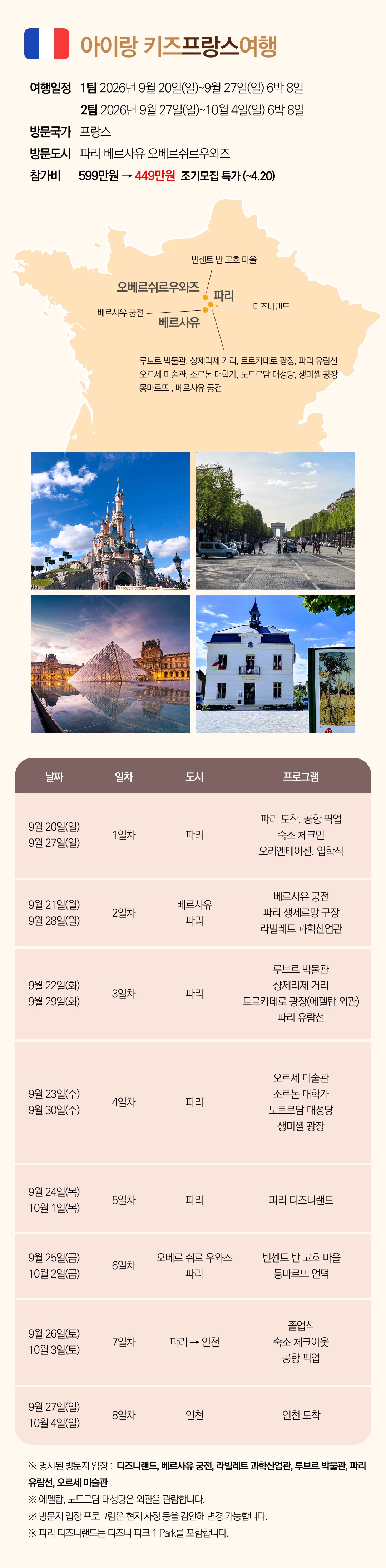 [2026년 9월] 추석 아이랑 키즈유럽여행 프랑스1팀