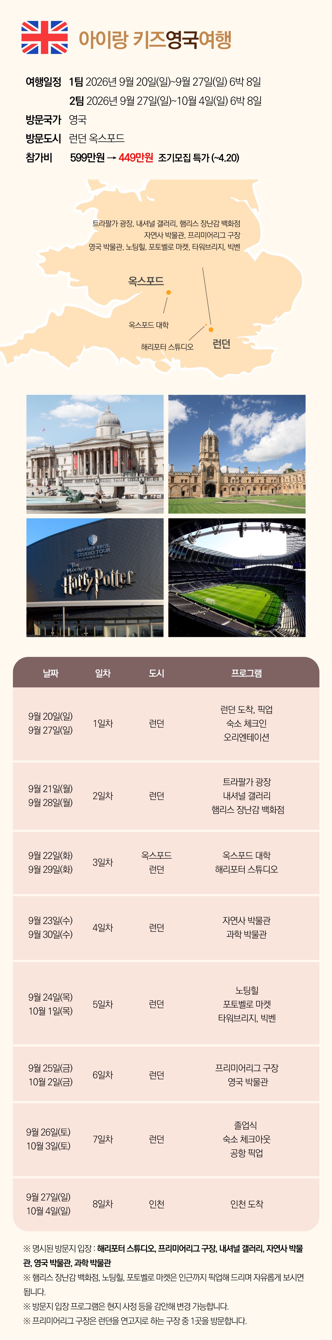 [2026년 9월] 추석 아이랑 키즈유럽여행 영국1팀