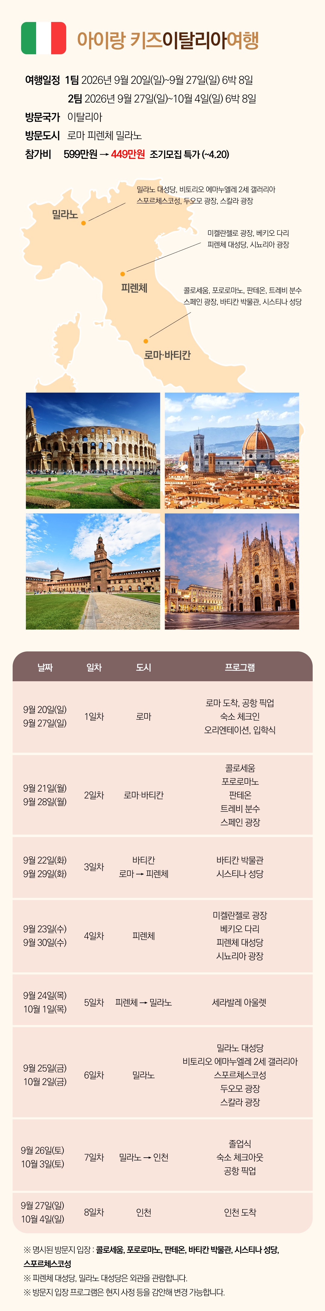[2026년 9월] 추석 아이랑 키즈유럽여행 이탈리아1팀