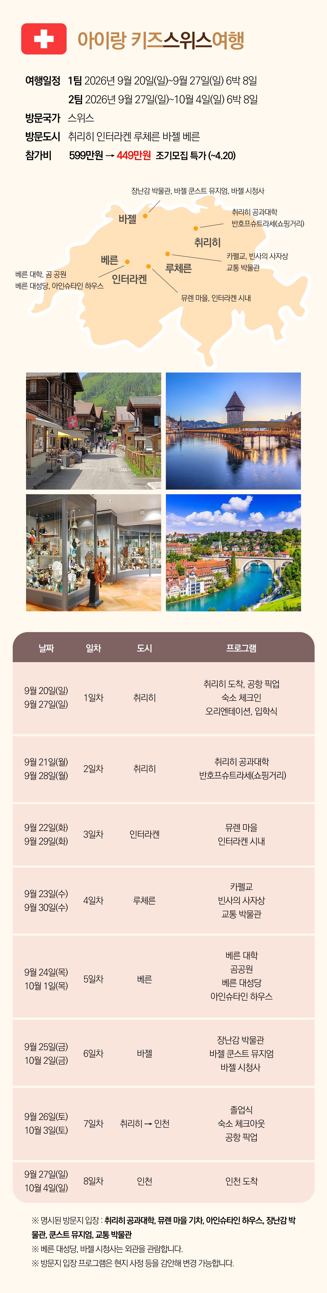 [2026년 9월] 추석 아이랑 키즈유럽여행 스위스1팀