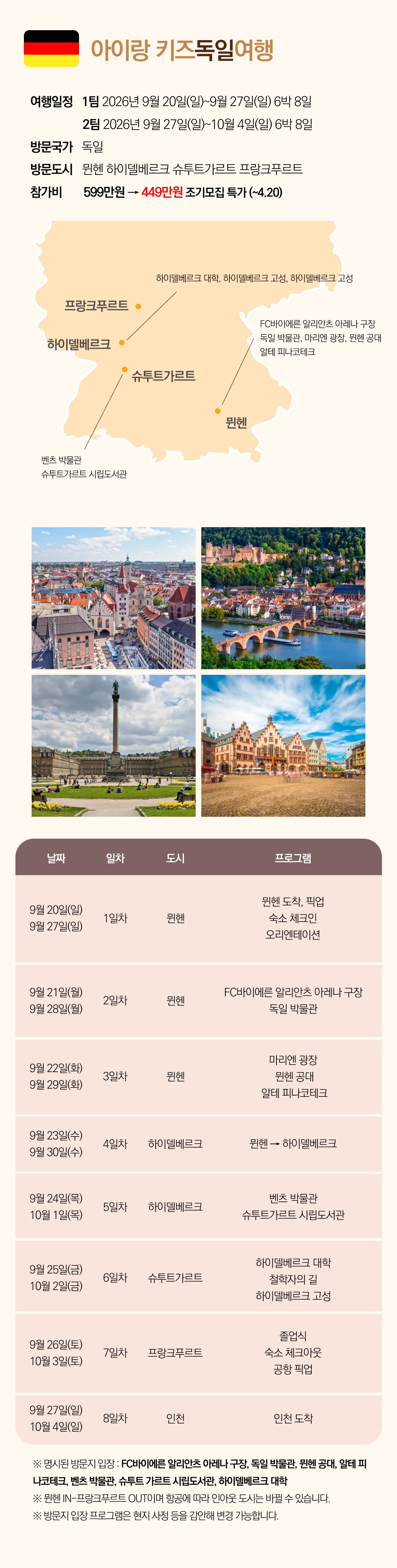 [2026년 9월] 추석 아이랑 키즈유럽여행 독일1팀