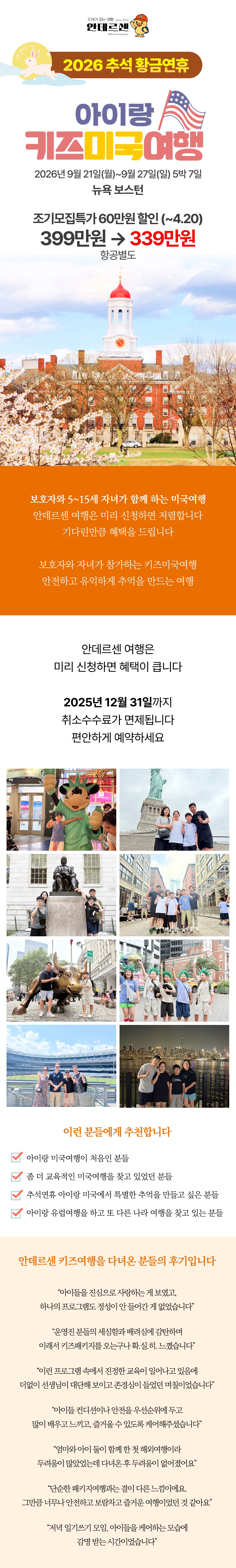 [2026년 9월] 추석 아이랑 키즈미국여행 항공불포함