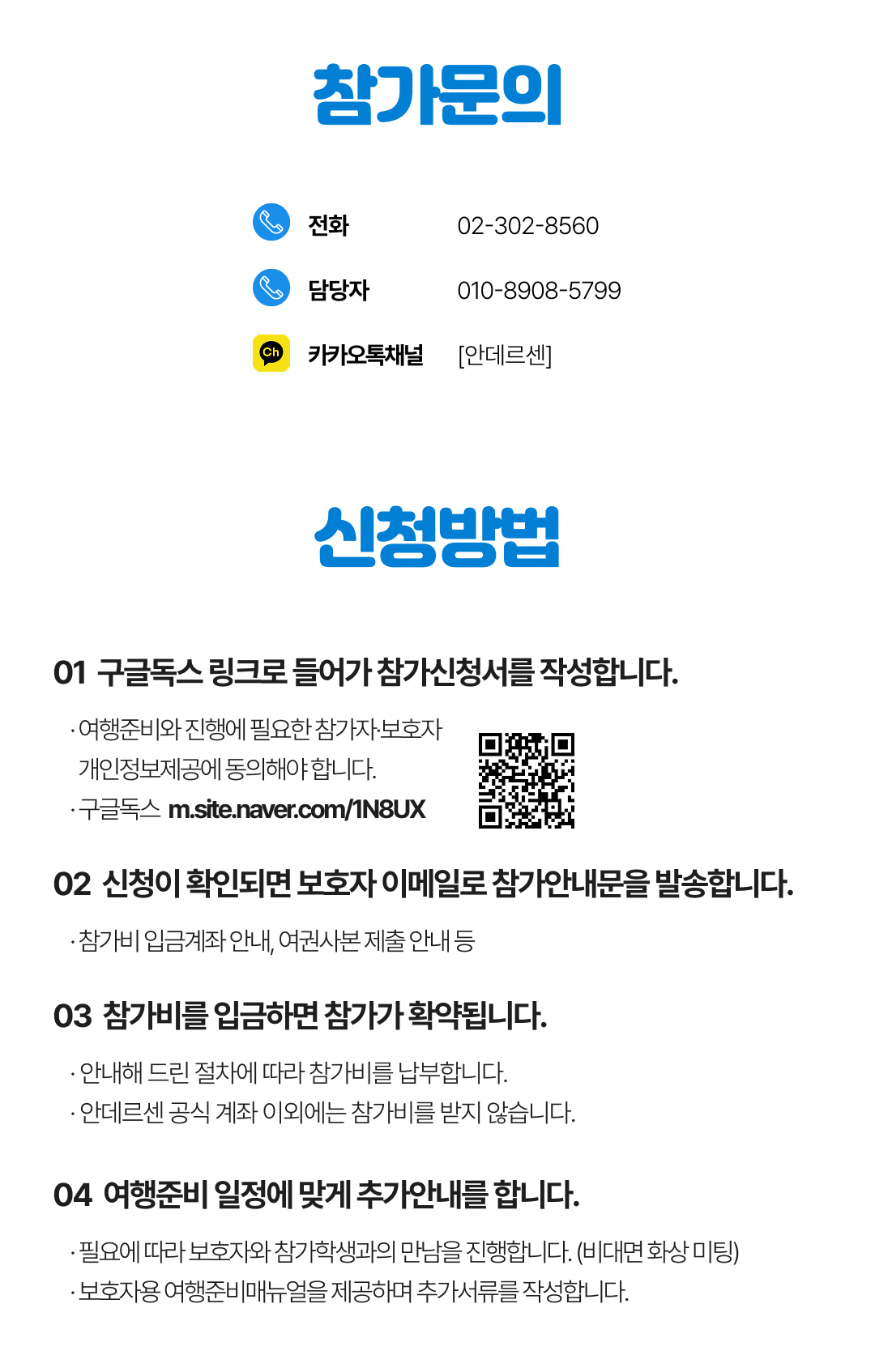 상세한 여행준비를 위해 구글 참가신청서를 작성해주셔야 합니다. 구글독스 참가신청서를 작성하지 않으면 정상적으로 예약이 접수되지 않습니다. 클릭하면 바로 구글 참가신청서로 연결됩니다.
