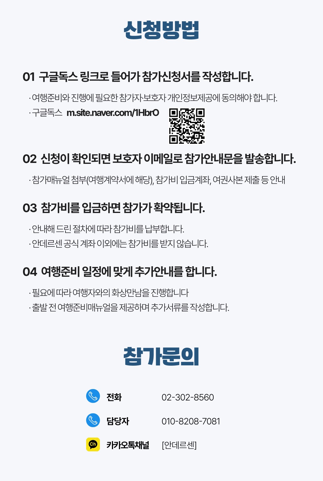 상세한 여행준비를 위해 구글 참가신청서를 작성해주셔야 합니다. 구글독스 참가신청서를 작성하지 않으면 정상적으로 예약이 접수되지 않습니다. 클릭하면 바로 구글 참가신청서로 연결됩니다.