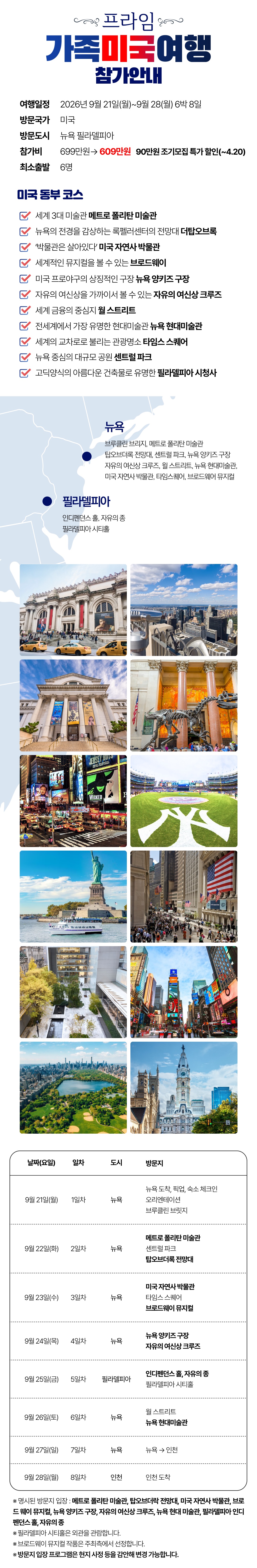 [2026년 9월] 추석 프라임 가족미국여행 미국동부