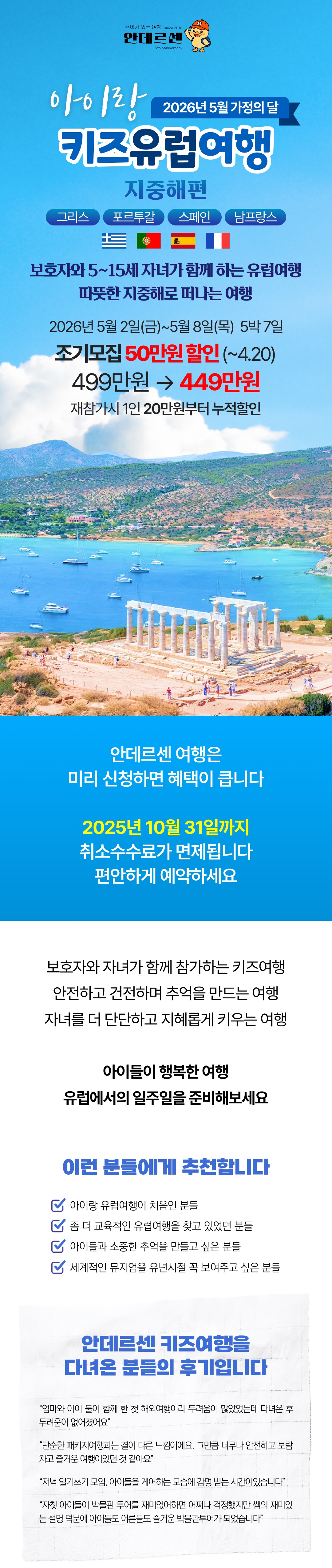 [2026년 5월] 가정의달 아이랑 키즈유럽여행 지중해편